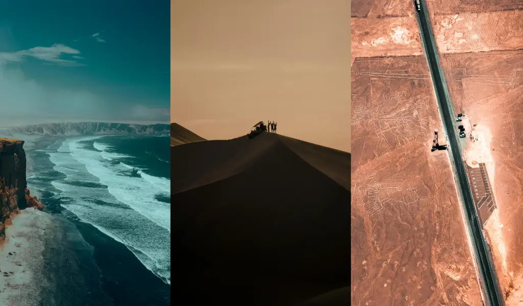 Ica, las enigmáticas Líneas de Nazca, Islas Ballestas, donde observarás la rica vida marina. emocionante paseo en buggies y sandboarding en las dunas de Huacachina. para el segundo día, sobrevuela las impresionantes Líneas de Nazca y visita el Museo María Reiche